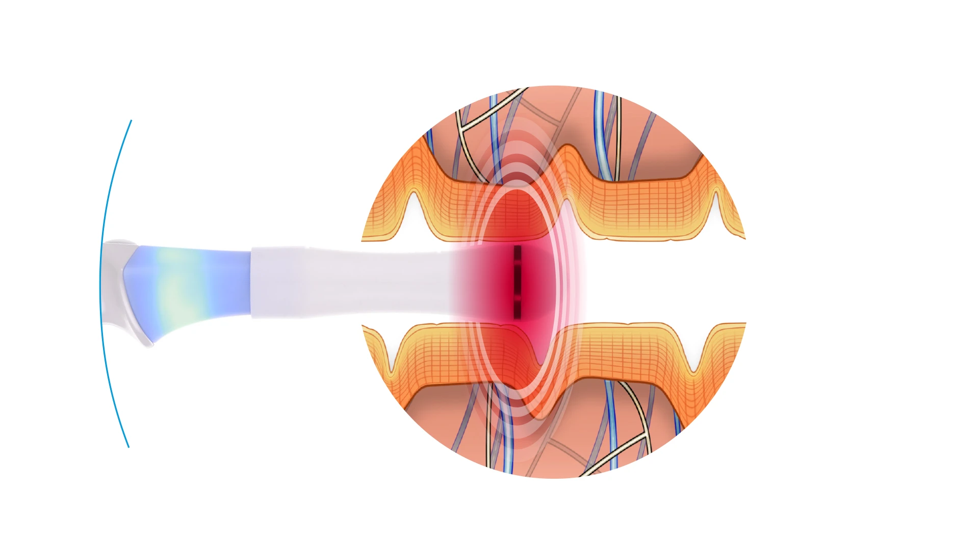 The treatment uses a combination of radiofrequency and ultrasound to gently heat the internal and external tissues. This thermal energy triggers the body's natural healing response to regenerate collagen fibers.